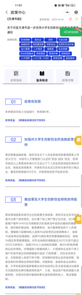 可进行政策指标查看、政策量身精度查看、政策详情正文内容查看及推荐政策和猜您关注。